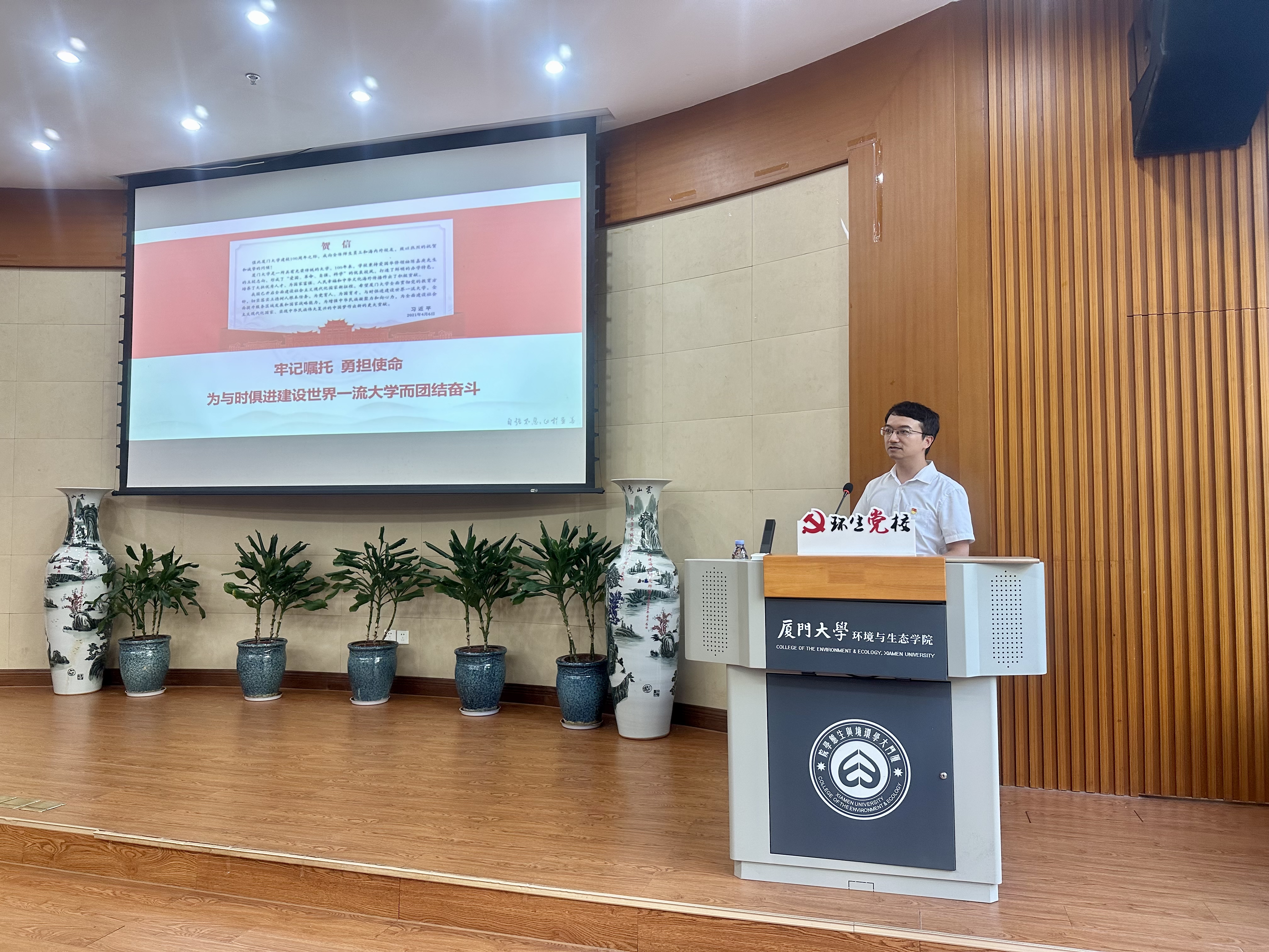 接着,他就学校加快建成中国高等教育东南中心这一使命愿景的历史逻辑、实践逻辑和发展逻辑,解读了打造中国高等教育东南中心是立足新时代与时俱进建设世界一流大学的路径方向,是学校建设中国特色世界一流大学的新路探索。最后,他结合自己参与党代会报告起草的切身感受,分享了报告的产生过程。
