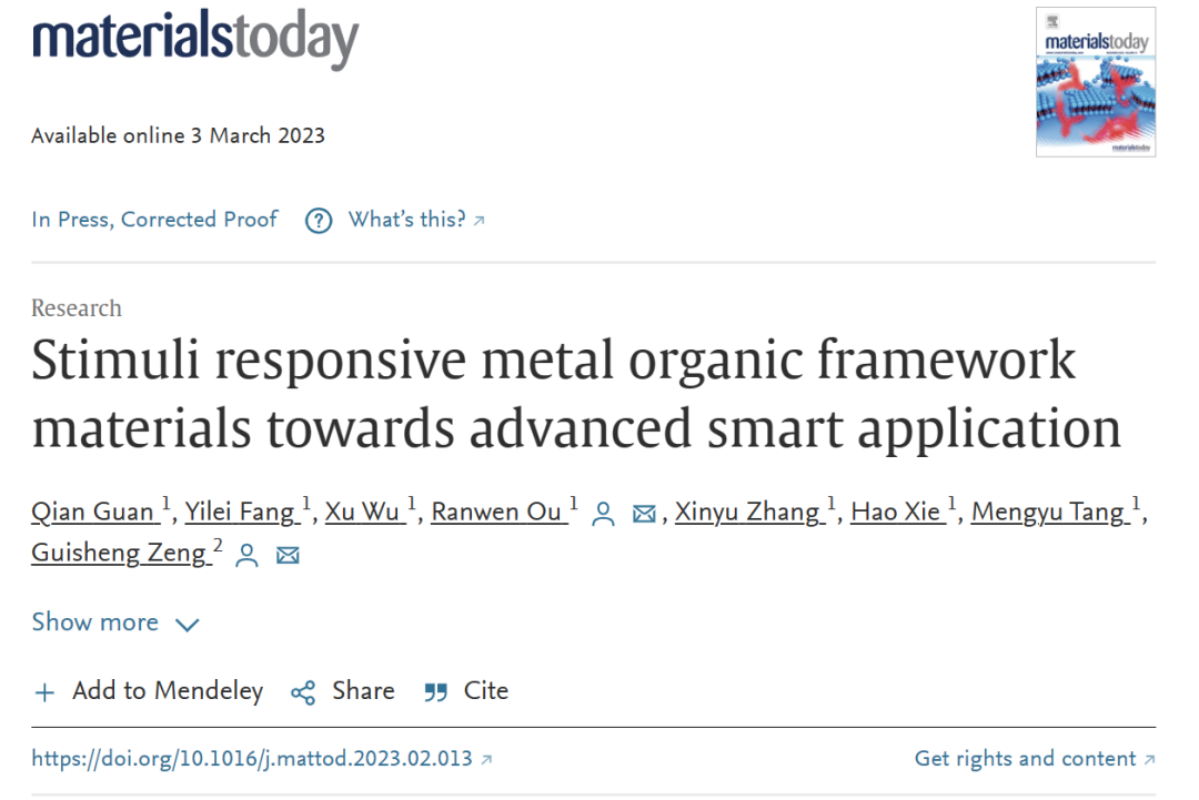 近日,新葡的京官网水质安全团队区然雯课题组在材料领域综合期刊Materials Today上发表了题为“Stimuli responsive metal organic framework materials towards advanced smart application”的综述论文。该论文详细介绍了刺激响应MOF材料的分子设计策略和刺激响应的类型,全面阐述了近年来刺激响应MOF材料在离子吸附、二氧化碳捕获、药物递送、离子运输等高级应用方面的研究进展。最后对刺激响应MOF材料的设计和合成提出了新的见解和展望。本综述希望刺激响应MOF材料的吸引力可以帮助研究人员扩展这一方向,并启发下一代智能材料的设计。