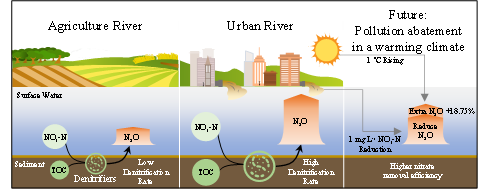 人口增长和城市化、工业化、农业集约化以及气候变化驱动的水污染和水质恶化,威胁人类和生态系统健康。我国“十三五”期间启动水污染防治行动计划(简称“水十条”),“十四五”期间推进减污降碳协同增效,水环境质量得到持续改善。N2O是主要的温室气体之一,在百年时间尺度上其全球增温潜势是CO2的273倍,氮污染较重的河流,其沉积物-水界面的反硝化等脱氮过程也较活跃,通常是N2O排放的热点区。然而,在沿海快速城镇化地区受人类强烈干扰的河流系统中,关键氮转化过程与N2O的产生如何响应污染减排与全球气候变化(如升温)尚不清楚。