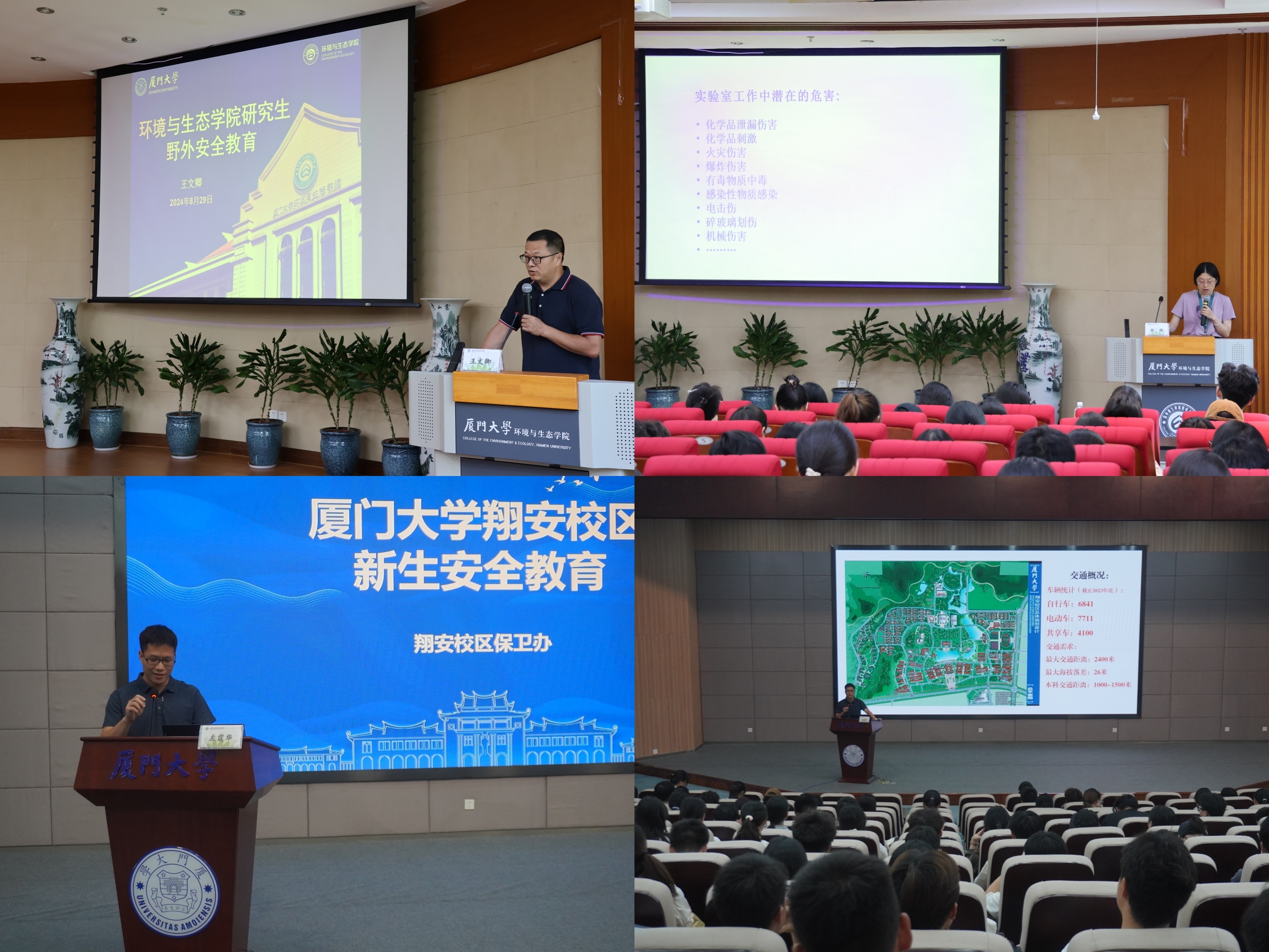 安全为重,筑牢防护屏障。29日下午,学院以专业安全教育作为入学教育首场活动,特邀学院王文卿教授为新生们讲解野外科研作业中的安全隐患与应对策略。王文卿老师以丰富的野外科研经验,辅以生动的案例分析,为新生们敲响安全的警钟,绷紧安全之“弦”。紧接着,学院科研服务中心工程师、实验室安全秘书林琳老师详细介绍了实验室设备的操作规范、药品使用及实验安全规章制度要求,针对化学品泄漏伤害、有毒物质中毒、机械伤害等若干方面给出紧急处理建议,为大家筑起一道坚实的科研安全防线。31日下午,翔安校区保卫办左霆华老师应邀开展校园安全教育,内容涵盖国家安全、禁毒教育、防诈骗、防台风、防溺水、校园交通安全等,提醒同学们安全无小事,要时刻保持警惕,平安度过校园时光。