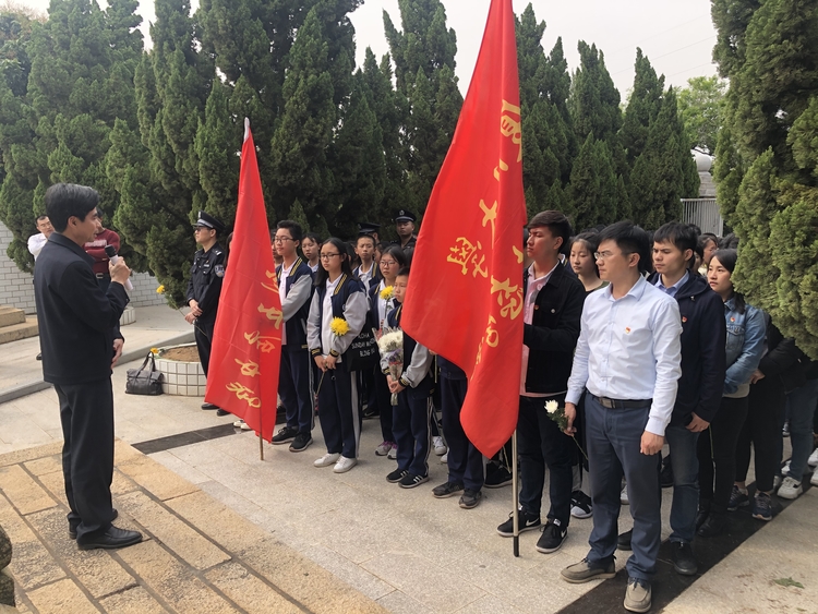 两坛花篮寄哀思,朵朵菊花祭英魂。4月4日下午,在刘五店中学校长宋火金、德育主任柳振乾、校团委书记洪雨顺、班主任代表,我校新葡的京集团35222vip团委书记林明华、辅导员蔡群飞、张璐婧,厦门市公安局沃头派出所教导员彭智翔、琼头派出所教导员李尉的组织带领下,我校新葡的京集团35222vip学生组织临时党支部、2018级硕士生第一党支部、本科生党支部全体成员,刘五店中学学生代表,厦门市公安局沃头派出所、琼头派出所官兵参加了祭扫活动。祭扫仪式由洪雨顺主持。