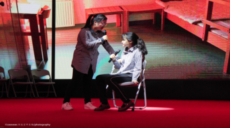 新葡的京官网2018级心理剧队伍由7名演员和7名幕后人员组成,其中,陈弘昊担任导演,黄喆晗,张如筱担任编剧,薛雨霏,唐梦雨等人主演。此外,牟新政,陈语齐,王齐治三位经验丰富的学长进行监督指导。该剧向我们讲述了薛雨霏饰演的小雨进入大学之后,想要改变自己内向的性格,一方面,她自己真正的内心想要慢慢改变现状,在保持自我的同时,用自己的方式融入集体,而另一方面,唐梦雨饰演的小雨的另外一个内心却让她迎合别人,掩盖真实的自我,以此来融入集体。在小雨内心的两个声音发生激烈碰撞后,小雨妥协了,选择迎合他人,并因此戴上“面具”。待自己独自一人时,她却又留下了眼泪,发出低微的啜泣声。观众们被演员炽热浓烈的情感所打动,纷纷露出同情而担忧的神色。