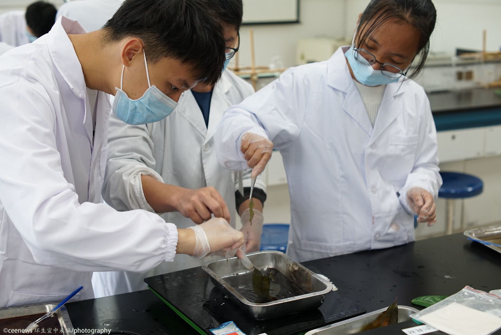 认真聆听讲解后,志愿者们正式开始进行叶脉书签的制作。首先,他们将配制的实验溶液加热煮沸,再放入事先挑选并洗净的叶片。在此过程中,志愿者们需要不时用镊子轻轻翻动叶片,使叶片均匀地受到腐蚀。