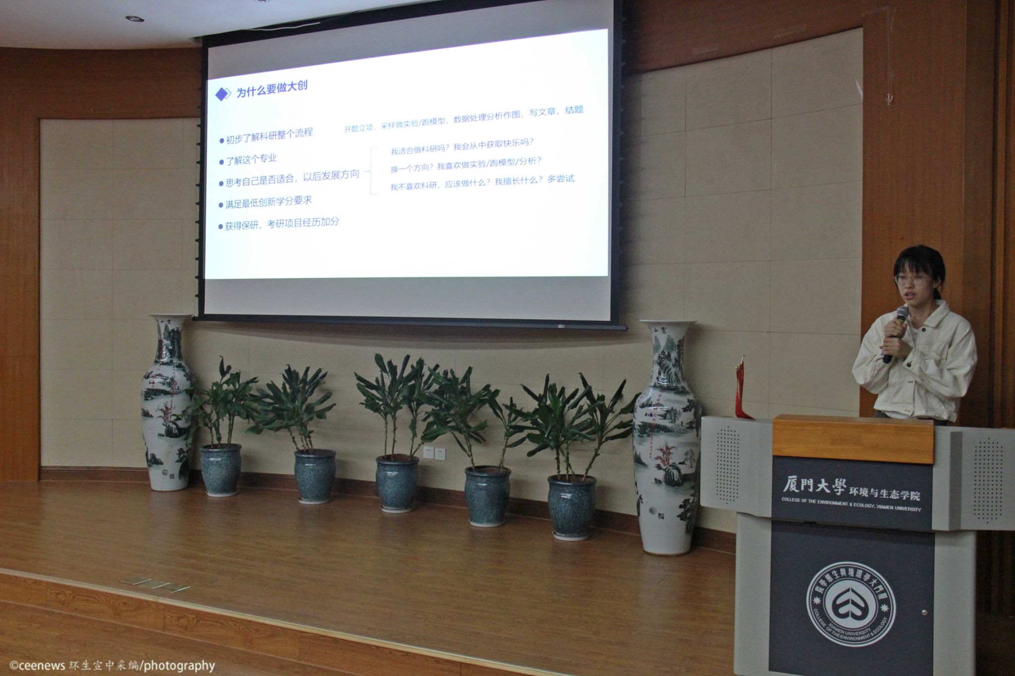 为了使同学们全面认识、参与大学生创新创业训练计划项目以及了解创新学分规定,4月23日晚,学院于金泉楼B103举办第42期科创专题学长学姐辅助计划。新葡的京官网黄晓佳教授受邀参与本次活动,科创中心负责人马力楠、2018级生态学专业本科生许天云、2018级环境生态工程专业本科生汪雪婷、2019级环境生态工程专业本科生洪恺声到场分享经验,2020级、2021级本科生到会听讲,胡琪同学主持本次活动。
