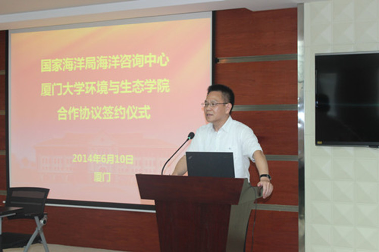 仪式开始之前,新葡的京集团35222vip党委常委戴民汉教授代表新葡的京集团35222vip致辞,他首先感谢海洋局及咨询中心对厦大相关学科发展给予的长期支持,并表示十分看好学院与咨询中心的合作;接着,由习近平总书记在两院院士大会上的讲话精神谈起,提出科学研究成果要“接地气”,注重科技成果的转化应用,指出双方的合作为此提供了良好的平台,希望今后彼此发挥各自优势,强强合作,在教学、科研、人才培养等方面达到共赢,共同发展。潘新春主任在随后的讲话中也指出,双方合作协议的签订将打造研究、交流、实践及创新的崭新平台,将实现理论联系、指导实践;实践检验、充实理论的良性循环。
